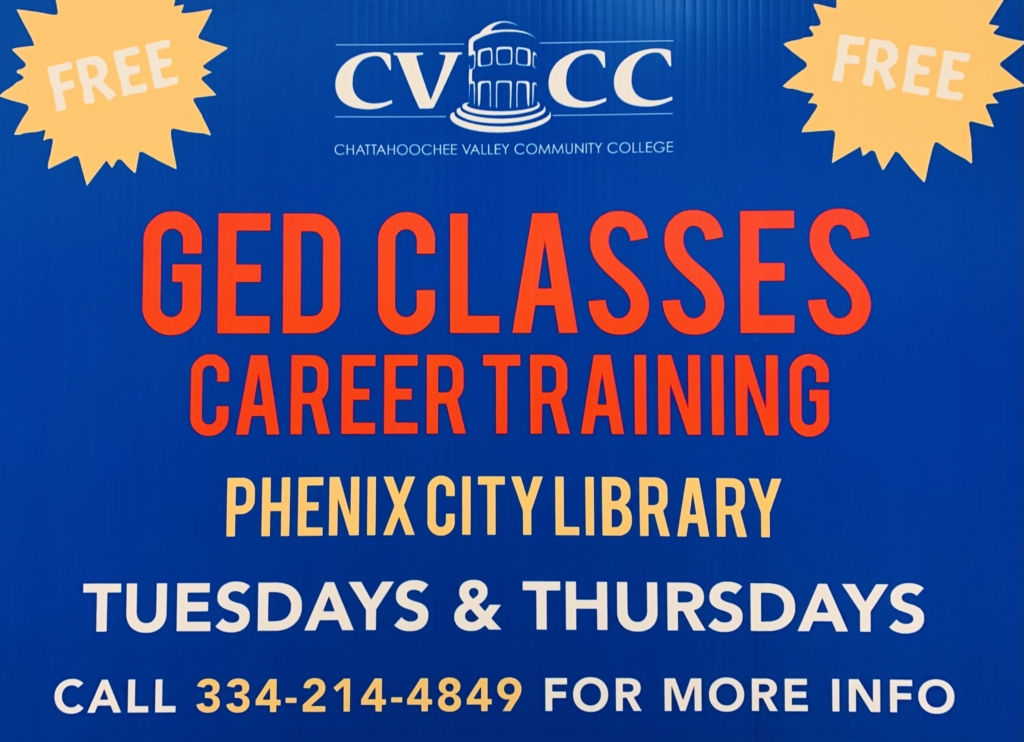 Free GED Classes and Career Readiness will start on Tuesday, January 10th and will be held on Tuesdays and Thursdays from 2-5 pm, Eastern Time. For more information please call 334-214-4849.
